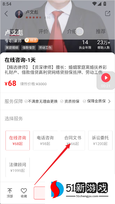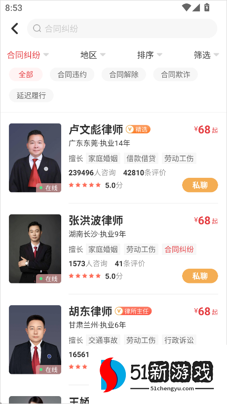 2、在这里,该平台提供了一些非常专业的律师供您根据自己的需求进行选择。