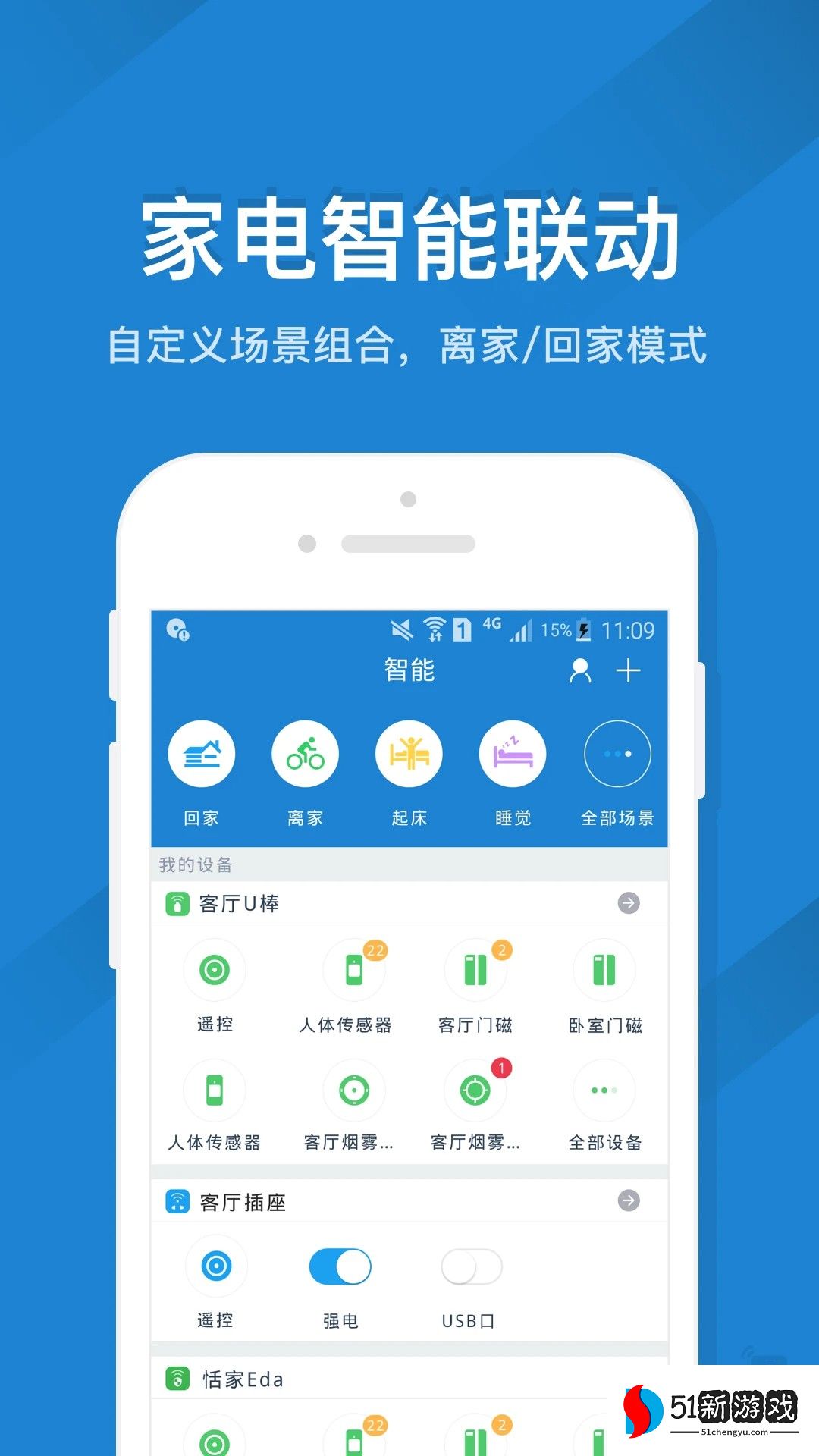 3、智能场景组合:支持家电智能联动,可定制场景组合,如居家/外出模式,增强生活便利性。