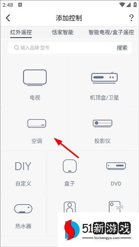3、进入设备添加页面,选择红外遥控类别下的空调。