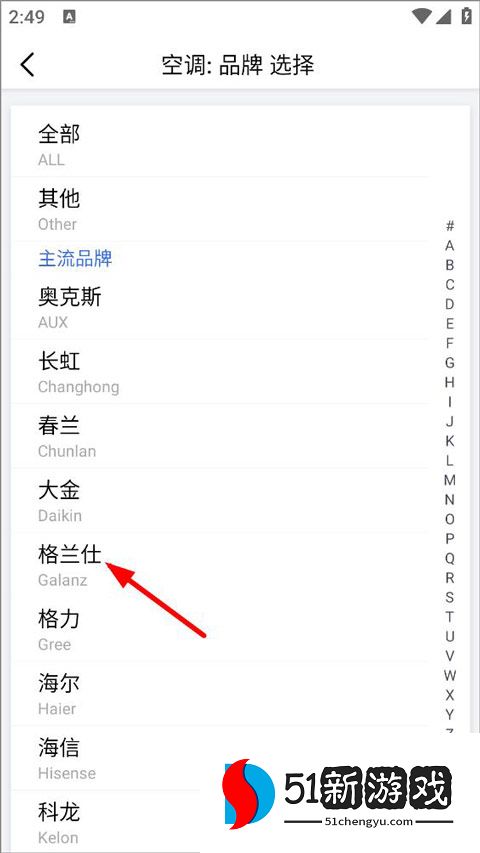 4、选择空调品牌,将空调遥控器添加到列表中。