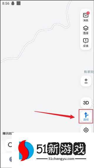 1、打开腾讯地图后,点击屏幕右侧的路线按钮。