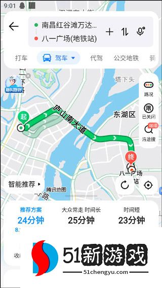 3、进入目的地后,将有一个前往西部的旅行选项。您可以选择所需的路线,系统将推荐最佳路线和实时路况。