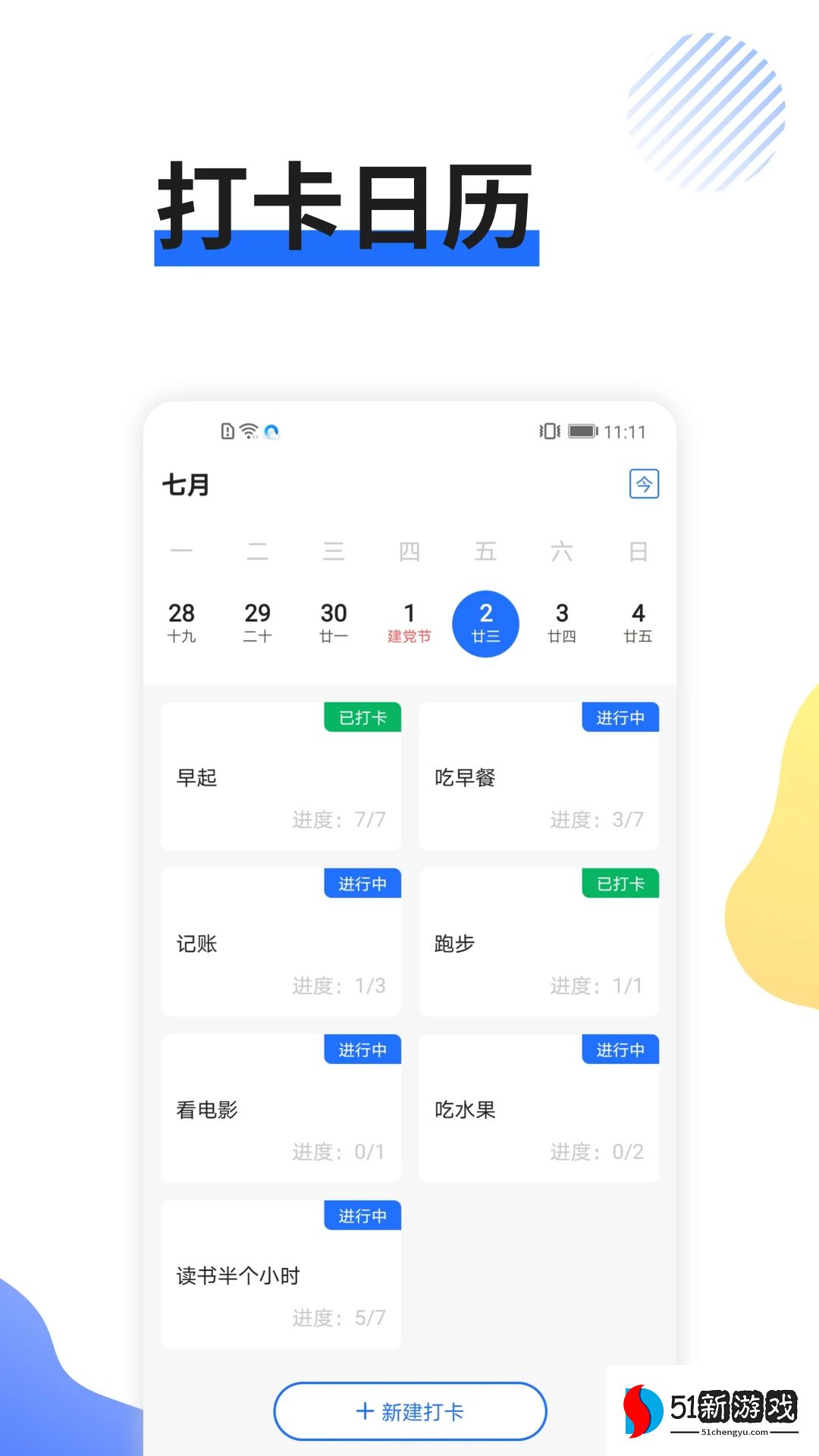 2、主页有一个新的签到功能入口,用户可以在其中创建和管理各种自定义签到项目,以形成习惯或完成任务。
