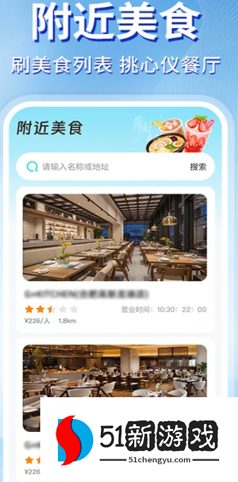 美食发现:精准定位周边餐厅,展示真实用户评分、距离和营业时间。
