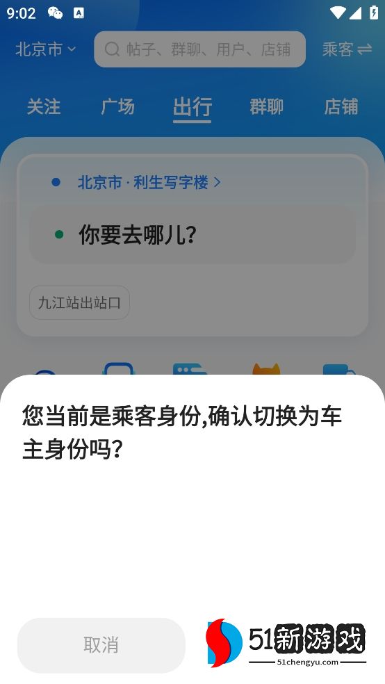 1、打开顺风车应用程序,选择乘客或车主身份。