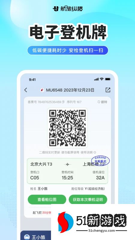 2、在线值机:支持国内和国际航线的在线值机,允许用户随时随地办理值机并选择座位。
