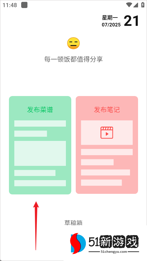 2、选择在此处发布食谱。