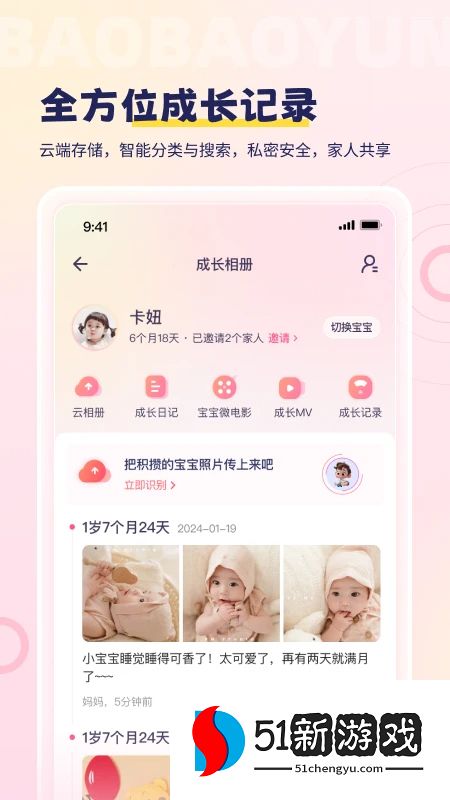 3、即时分享:支持夫妻双方实时分享孩子的成长信息,无论孩子身在何处,他们都可以随时了解孩子的成长情况。