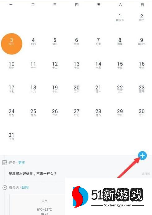 1、首先,在手机上安装365日历软件。然后,在日历软件的主界面上,单击“加号”图标,如下图所示,进入日程添加选项。