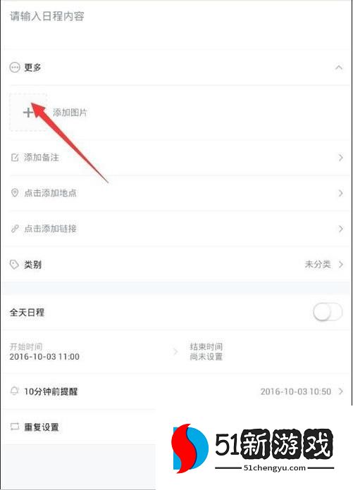 2、然后,在下面框中的位置添加所需的提示。我们在这里不会详细介绍。对于那些愿意用图片表达日程安排的人来说,添加图片是一种更快、更方便的方式。事实上,365日历还可以通过点击图像中箭头指示的位置来添加图像提醒。