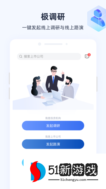 极调研是一款服务于资本市场的权威调研软件,软件精准的对接了上市公司、专业投资机构和卖方分析师,为有调研需要的用户提供了一个很好的平台,用户可以随时在平台上发起各样的调研会议,邀请相关人员参与会议,快速的完成相应的调研;平台还设置了多样的便捷功能,可以为用户进行线上调研提供很多的帮助。软件里面含有很多的路演,用户可以随时在线观看,便捷的了解各样市场动态,还可随时发起路演,非常方便。