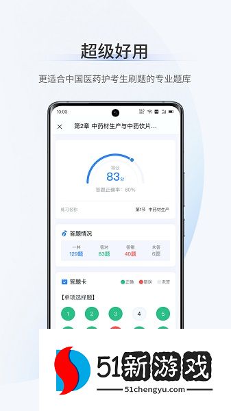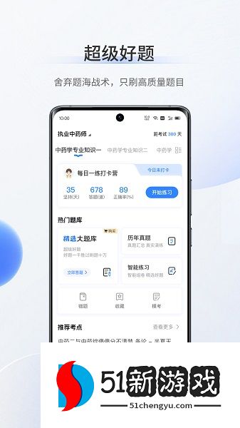 超级题库是一款针对医药护考试的在线题库软件,平台整合了执业医师、护士资格等专业考试的权威题库资源,提供系统化的学习方案。其特色在于通过智能算法分析用户练习数据,动态调整训练内容难度,精准强化薄弱环节。高清视频讲解重点难点考点,配套模拟测试还原真实考场环境,帮助考生高效掌握核心知识点,提升应考能力。还为用户提供干货资料,随时随地在线查看,还能通过下载电子版功能进行打印,满足不同用户的学习习惯,为用户提供充足精炼的备考知识。