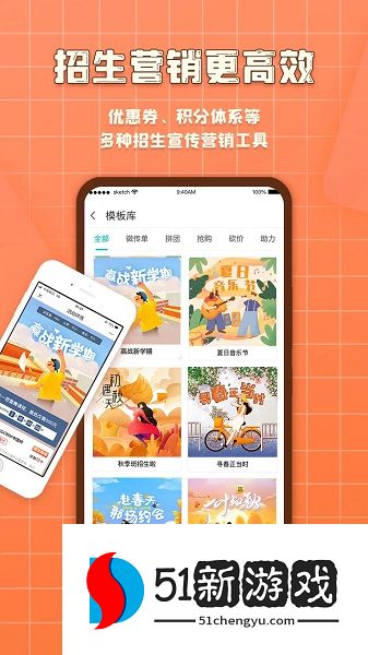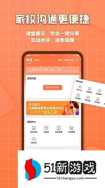 3、营销工具集成:内置功能,如优惠券、团购和现有客户向新客户的推荐,用于学生招聘和病毒式增长,帮助机构以低成本获得客户。
