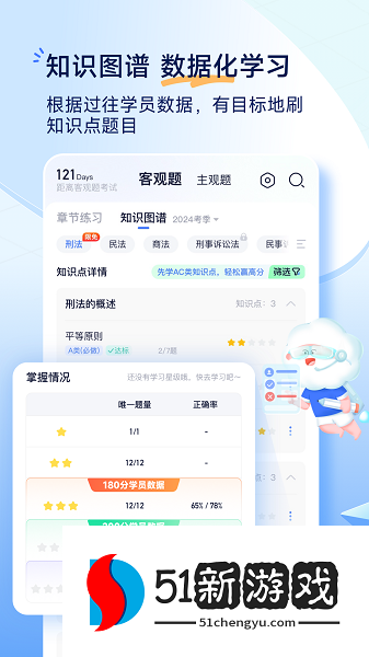觉晓法考是一款专业的法考学习备考工具,它主要帮助知识基础差的法考考生进行有效的学习,让他们能够快速提升自己的学习水平和学习效率。同时,在觉晓法考中有着各种不同的关于法律的基础课程、机考刷题、陷阱记忆、个人数据报告、分数预测、教辅督促等的辅导内容,并且这里的知识内容丰富,不管你要查询什么关于法律的资料内容这里都能帮你找到,还有非常多的知识题库供用户学习,用户可以随时在线学习刷题,而且题目内容每天都会及时更新。