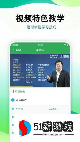 3、在视频教学页中,按章节列表逐个播放课程,每节课下方还有对应的考点练习题可巩固理解。