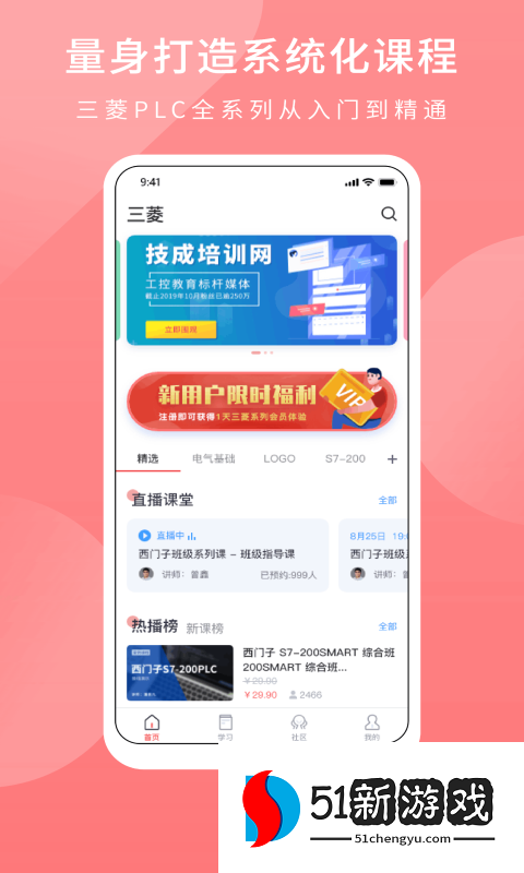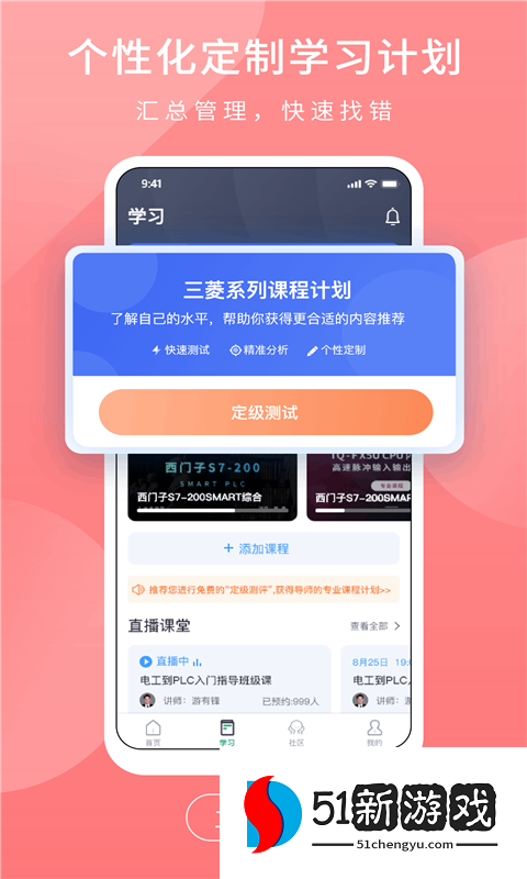 PLC学吧是一款专业的三菱PLC手机学习软件,能够为用户提供大量相关的知识内容,涵盖电气基础、定位控制、通信控制、指令与编程等优质的学习课程,可以帮助用户更好的通过手机在线进行学习,并且这里还为用户提供了大量优质的直播课程,你可以进入直播间与老师进行互动交流学习,不懂的各种问题都可以进行咨询,可以为您详细的解答,方便你更好的理解。