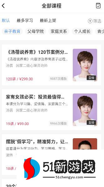 1、主题丰富的高级课程:涵盖高效沟通、时间管理、情绪治疗、亲子关系、人工智能工具应用等热门领域,由行业专家和知名讲师精心打造。