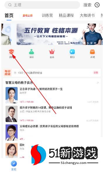 1、首先点击首页的课程。