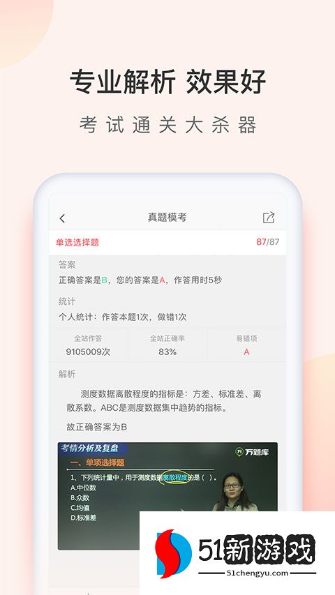 2、全尺寸模拟考试:严格再现真实考试时间、问题类型和评分标准,提供分数分析和通过概率评估,帮助您提前适应考场节奏。
