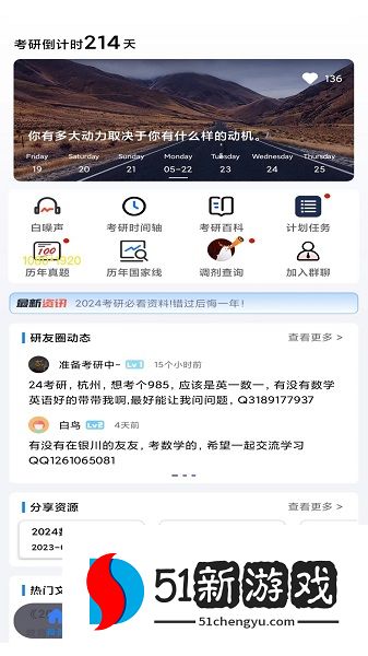 4、学习签到社区:加入同一学校和专业的学习伙伴小组,每天签到,互相监督,营造身临其境的备考氛围。