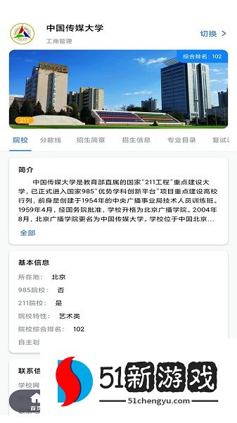 4、在院校板块,可以自由在线查找和阅览院校详情,知道招生和录取分数。