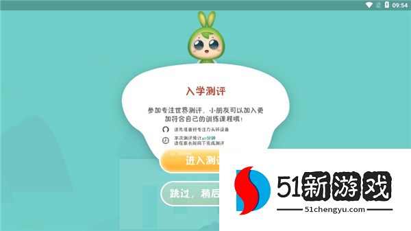 3、登录后,用户可参与入学评估,用于检测孩子的注意力水平及当前专注状态。