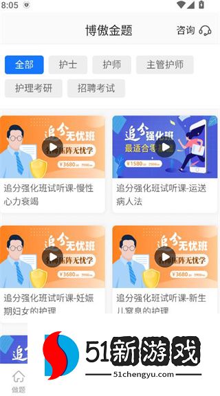 博傲金题是一款专注于医学类资格考试的智能刷题软件,主要服务于执业医师、护士资格等12类医学考试的备考需求。软件汇集了全国历年真题和权威模拟题共计15万道,所有题目均由医学院校教授团队审核,并配有视频解析和考点延伸讲解。采用智能算法分析用户答题数据,精准定位知识薄弱环节,生成个性化提分方案。特有的"3D解剖题库"通过立体模型帮助理解复杂医学知识,AI记忆系统根据遗忘曲线安排复习节奏。