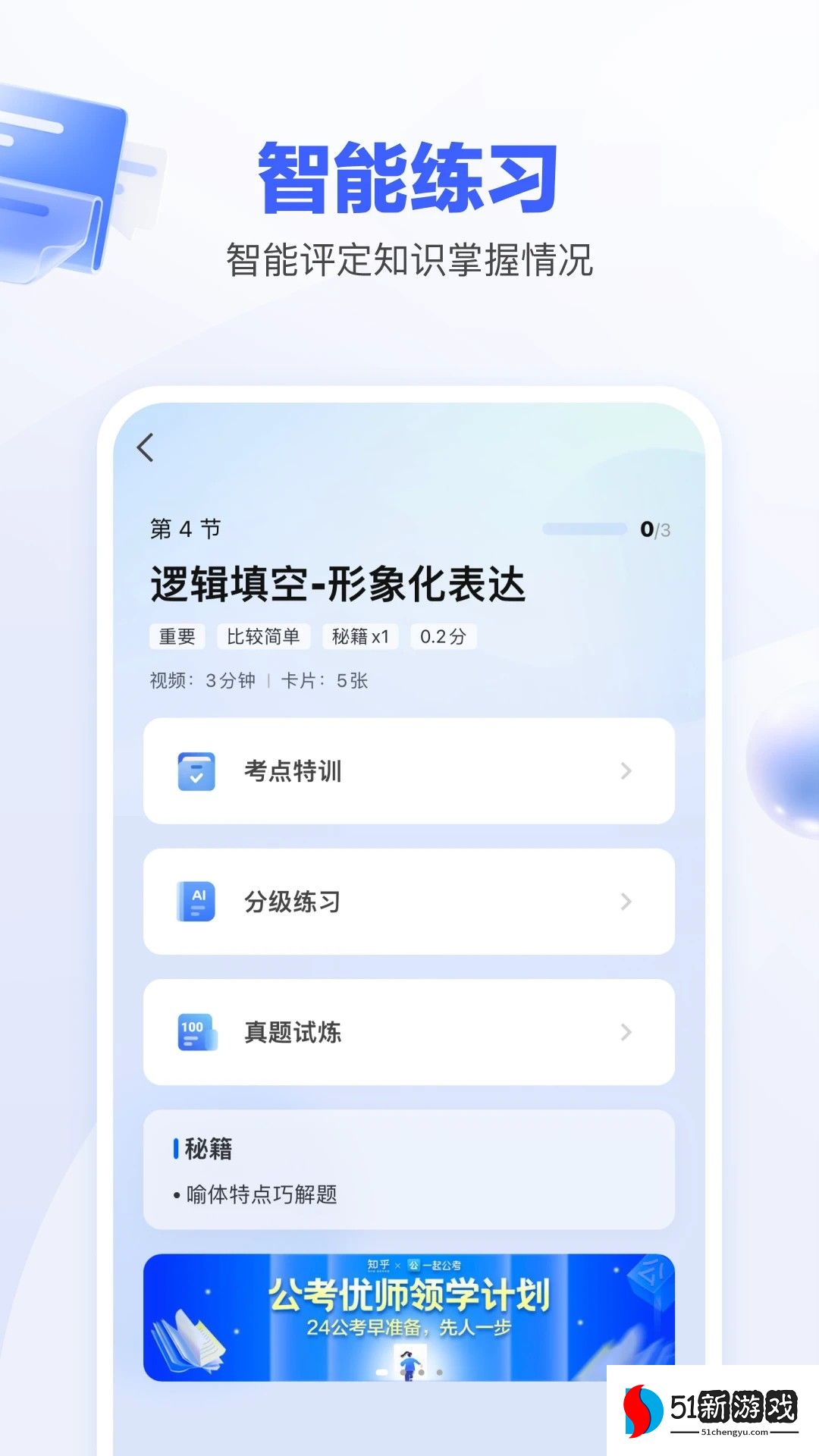 一起公考AI课是一款受欢迎的公考学习软件,拥有丰富的公务员考试题库和知识可以实时更新,方便用户轻松浏览学习,轻松掌握全面的公考知识点,还集合了全面的公考课程内容,自由享受优质的学习服务和乐趣,还具有个性化的界面设计,允许用户直接进入首页中查看详细的视频,能完全满足所有学习需求,还提供了各种有趣的学习模式,帮助用户有效地学习来提高学习成绩和水平,有兴趣的用户欢迎来本站下载软件。