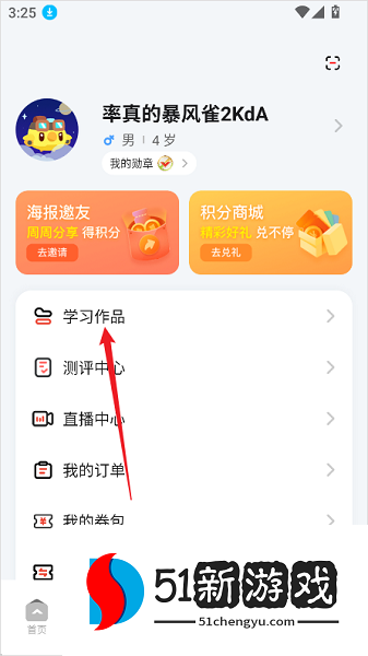 2、在个人中心中选择【学习作品】。