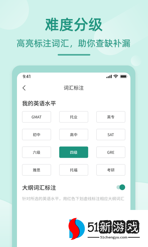 1、分级听说训练:内容按CEFR(A1-C2)或考试类型(四六级、考研、雅思等)分类,以精确匹配水平。