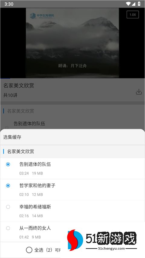 2、选择要下载的课程后,点击页面右下角的“确认缓存”按钮。