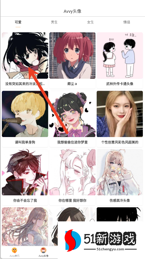 2、头像分类细致全面,可通过可爱、女生、男生或情侣等标签查找,快速定位心仪头像,节省时间。