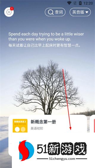 2、进入首页找到新概念第一册的学习入口,点击进入学习按钮,进入对应的课程学习页面。
