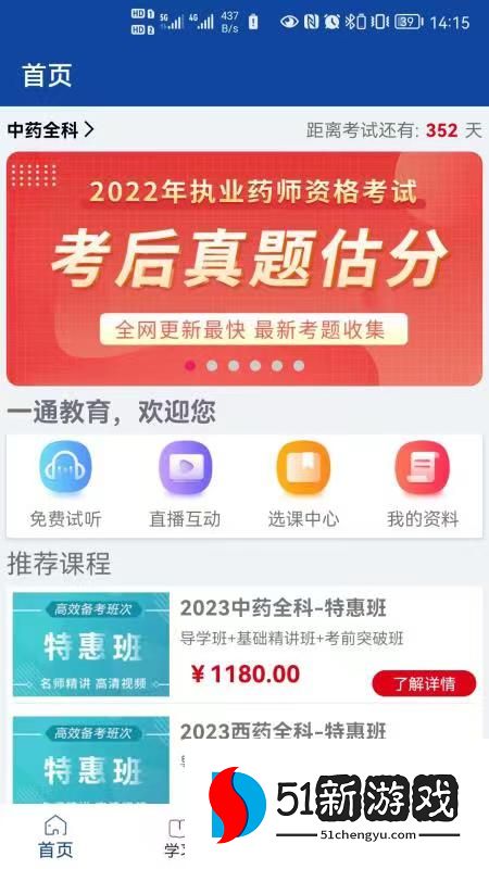一通教育是一款针对医学从业者量身打造的手机上网课学习软件,在线即可完成学习和练习,让用户轻松备考;分类查看推荐的课程信息,也可以自定义筛选课程进行学习,同时该课程包括直播课程、视频课程、录播课程等形式,支持在线观看或下载离线观看;包含的题库也多样,选择合适的题库即可开始练习,自动保存用户的做题记录,随时可以查看历史使用过的题库信息。
