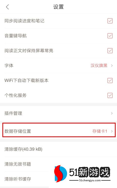 3、在设置中找到数据储存位置,点击就可以查看详细的位置了。