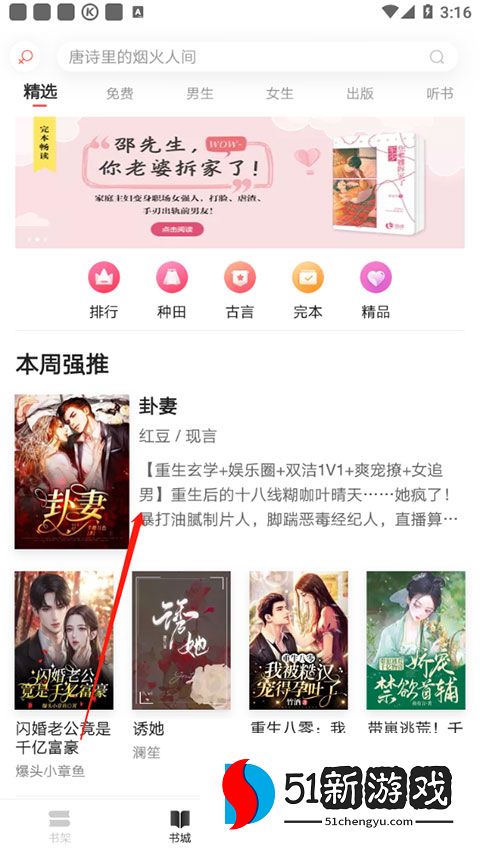 网易云阅读是一款小说阅读App,拥有着丰富多样的小说资源,涵盖了科幻、重生、仙侠、校园、言情、文学等众多热门题材,无论用户喜欢哪种类型的小说,都能在这里找到海量的好书。为了方便用户查找书籍,软件内精心设置了四个频道,分别是男生、女生、出版和听书。每个频道都针对不同的人群进行了细致入微的分类,男生频道里有热血刺激的冒险小说、烧脑悬疑的推理小说等;女生频道则有浪漫温馨的言情小说、唯美动人的古风小说等;出版频道汇聚了各类经典文学作品与专业书籍;听书频道则为用户提供了丰富的有声读物资源。