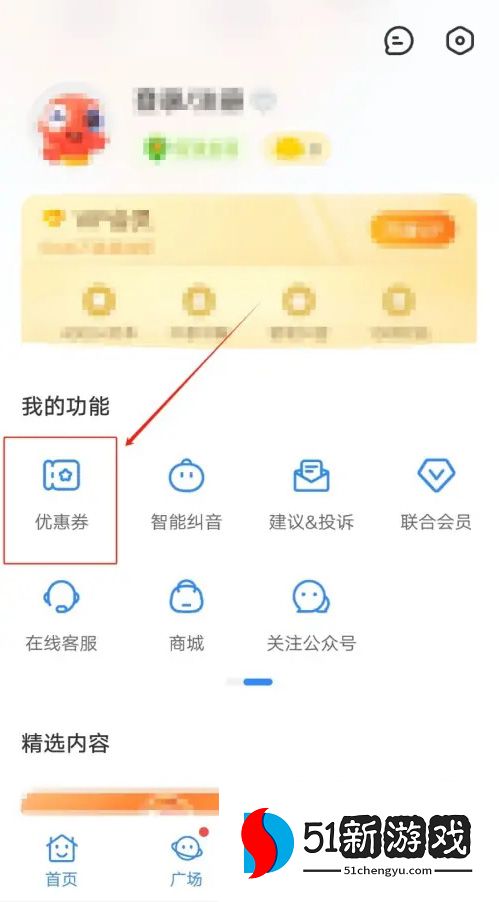 3、转到我的页面,单击我的功能类别中的优惠券选项,然后按照提示完成查看。