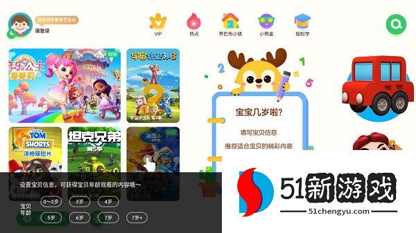 1、进入软件后,在此处填写宝宝信息,系统会推荐适合宝宝的精彩内容。