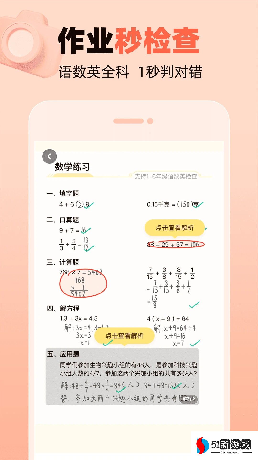 1、多学科全题型批改:支持数学口算、混合运算、方程求解等12种题型,覆盖整个小学阶段的核心知识点。