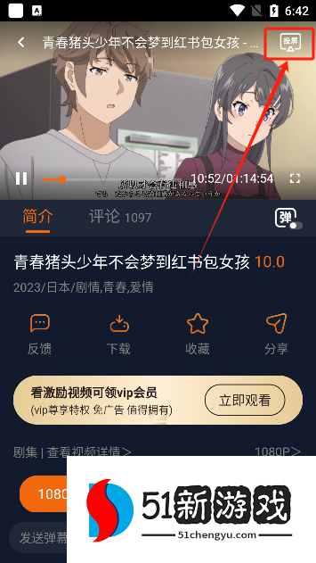 1、打开囧次元软件选择感兴趣的动漫进入到播放页面中。