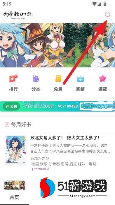 1、打开应用进入主页后,在界面右上角点击放大镜图标,即可进入搜索页面。输入你想阅读的小说名称或关键词,系统将智能匹配相关作品,帮助你快速定位目标内容
