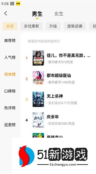 1. 打开下载的app,在书店里,有推荐榜、已完成图书榜、热门榜等各种排名,为你推荐最新、最受欢迎的图书。