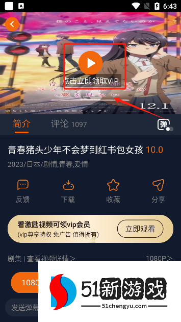 1、打开囧次元软件选择感兴趣的动漫进入到播放页面中。