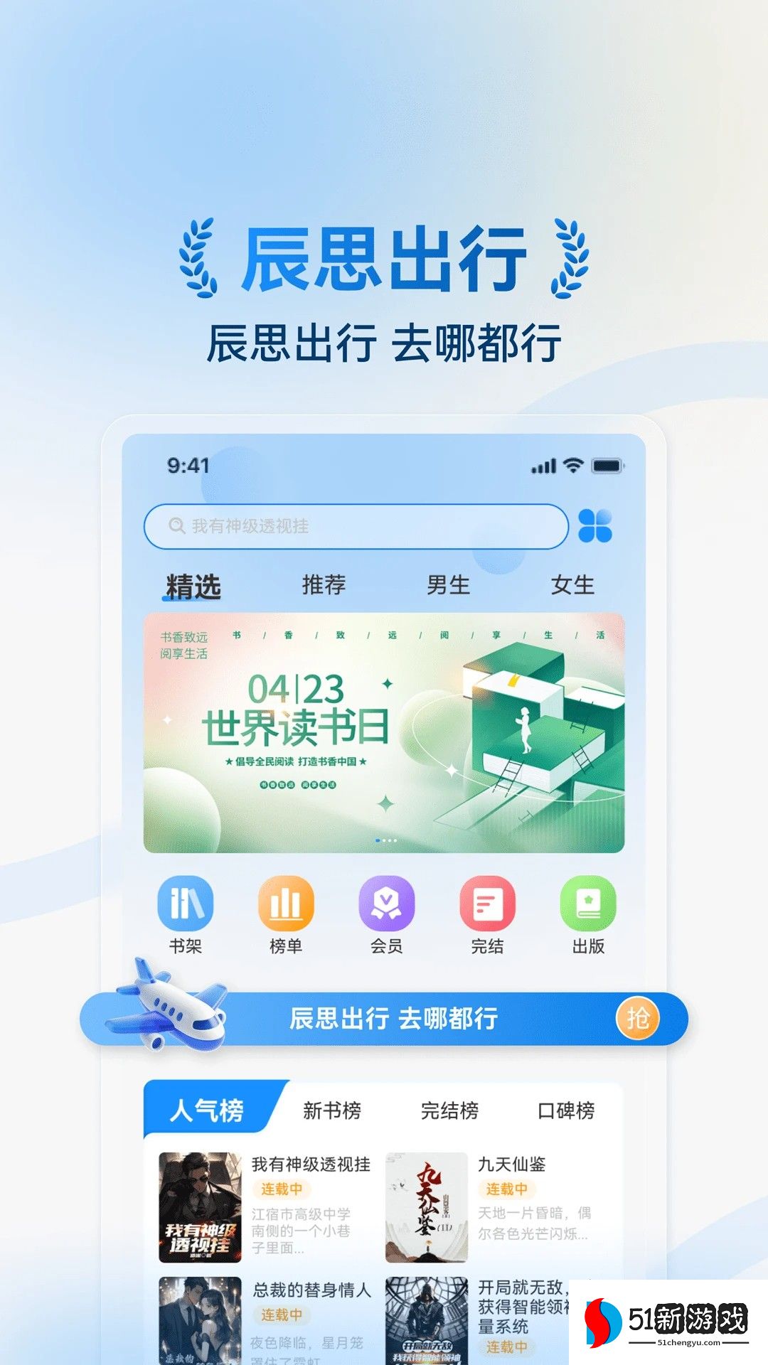 辰思小说是一款非常简单的免费看书阅读软件,拥有丰富多样的小说书城,可以让用户及时获取热门且受欢迎的小说作品,随时随地浏览阅读喜欢的小说书籍,还拥有全新的小说书架,轻松让用户自由管理各种精品小说来看,轻松享受优质的追书阅读乐趣,还提供智能搜索方式,可以快速搜索查找热门且受欢迎的小说书籍,方便用户免费阅读感兴趣的小说和最新内容,能完全满足所有阅读需求,有需要的用户欢迎下载软件吧。