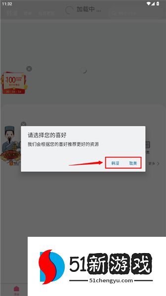 在进入首页前,下选择您的喜好,分别有:韩漫或者耽美,之后在软件内也可以更改。