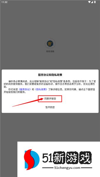 1、当你完成下载与安装后,打开软件,此时会弹出【服务协议和隐私政策】,点击【同意并继续】即可。