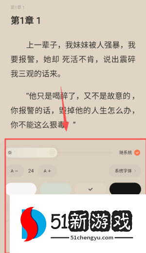 3、在开始阅读之前,请单击屏幕中间以调出设置菜单。在那里,根据自己的习惯调整字体、背景和翻页方式,实现个性化阅读。