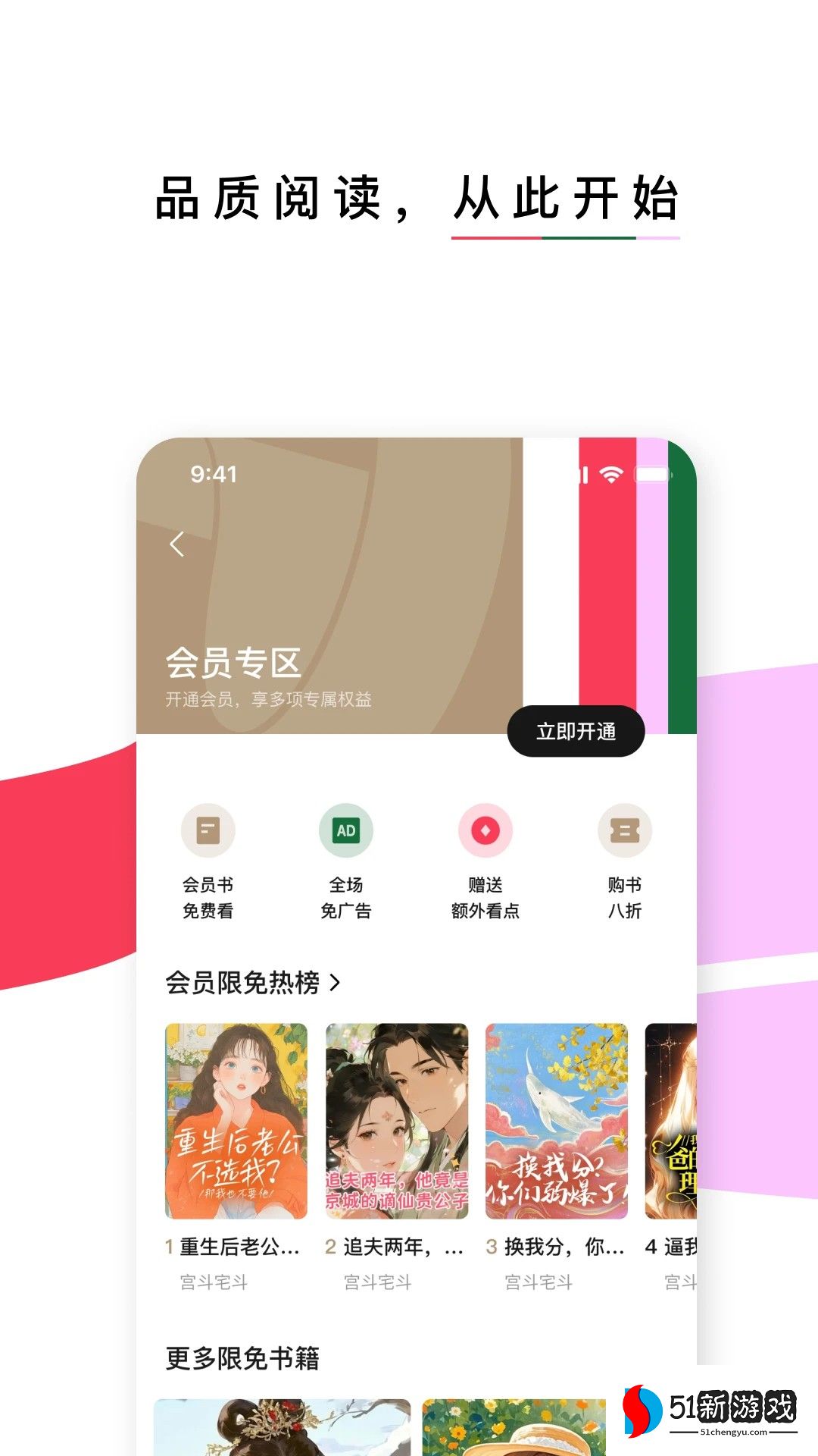 2、我们需要切换到主页上的书城部分,然后单击会员区。跳转到会员区后,我们可以看到成为会员的入口。