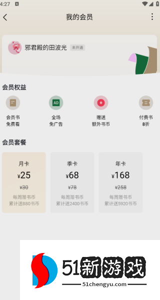 4、进入会员激活界面,我们可以看到不同阶段的会员价格。选择会员模式,付款后即可激活,享受专属特权!