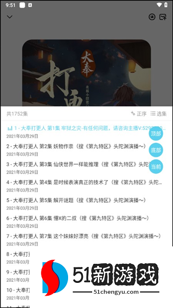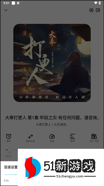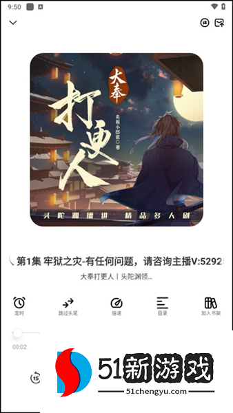 1、打开软件,我们能够进入到软件首页中去,在这里汇聚了非常丰富的有声小说作品,小编在这里选择了“大奉打更人”。